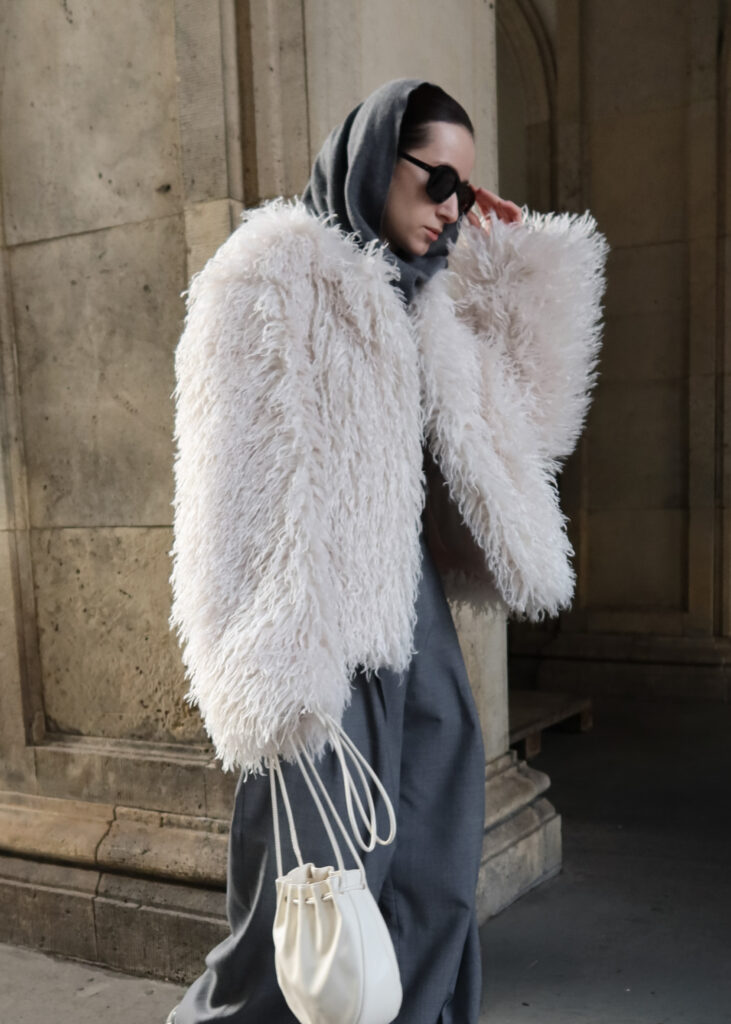 Picture a snowy landscape. The perfect Winter wonderland outfit is a total white or cream dream. Play with layering: a soft cream coloured turtleneck, wide leg trousers in the same tone and a Mongolia Fur Jacket or Tailored Coat. A matching scarf, gloves, and hat will not only keep you warm but also make the look cohesive and incredibly “Instagrammable.”