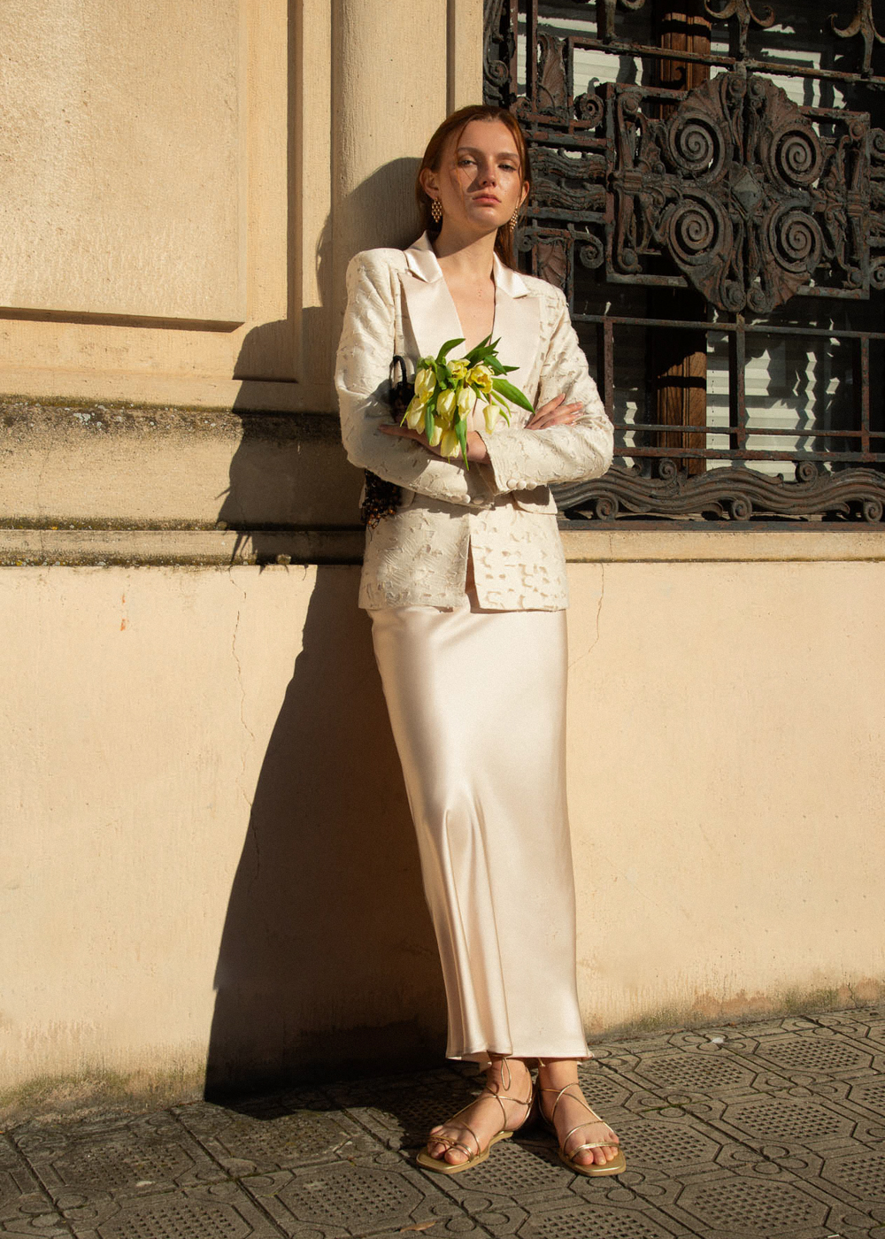 Crafted in Italy, this skirt features a luminous, satin-like finish that catches the light beautifully, making it an ideal choice for celebrations, evening events, or elevated day looks. The high waisted silhouette is designed with a discreet elasticated waistband, ensuring a flexible, flattering fit that moves with you without sacrificing style. With its fluid drape and sophisticated champagne hue, this skirt is a versatile powerhouse—pair it with a tonal blouse for a monochromatic “Quiet Luxury” look or a simple white tee for a chic, contemporary contrast.