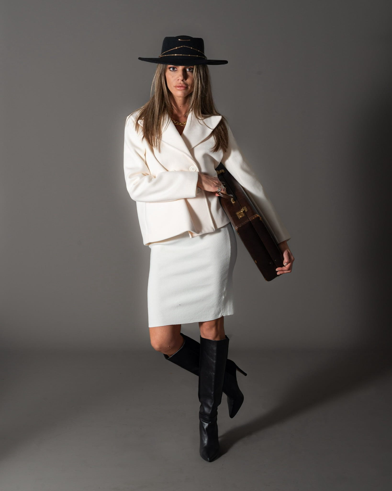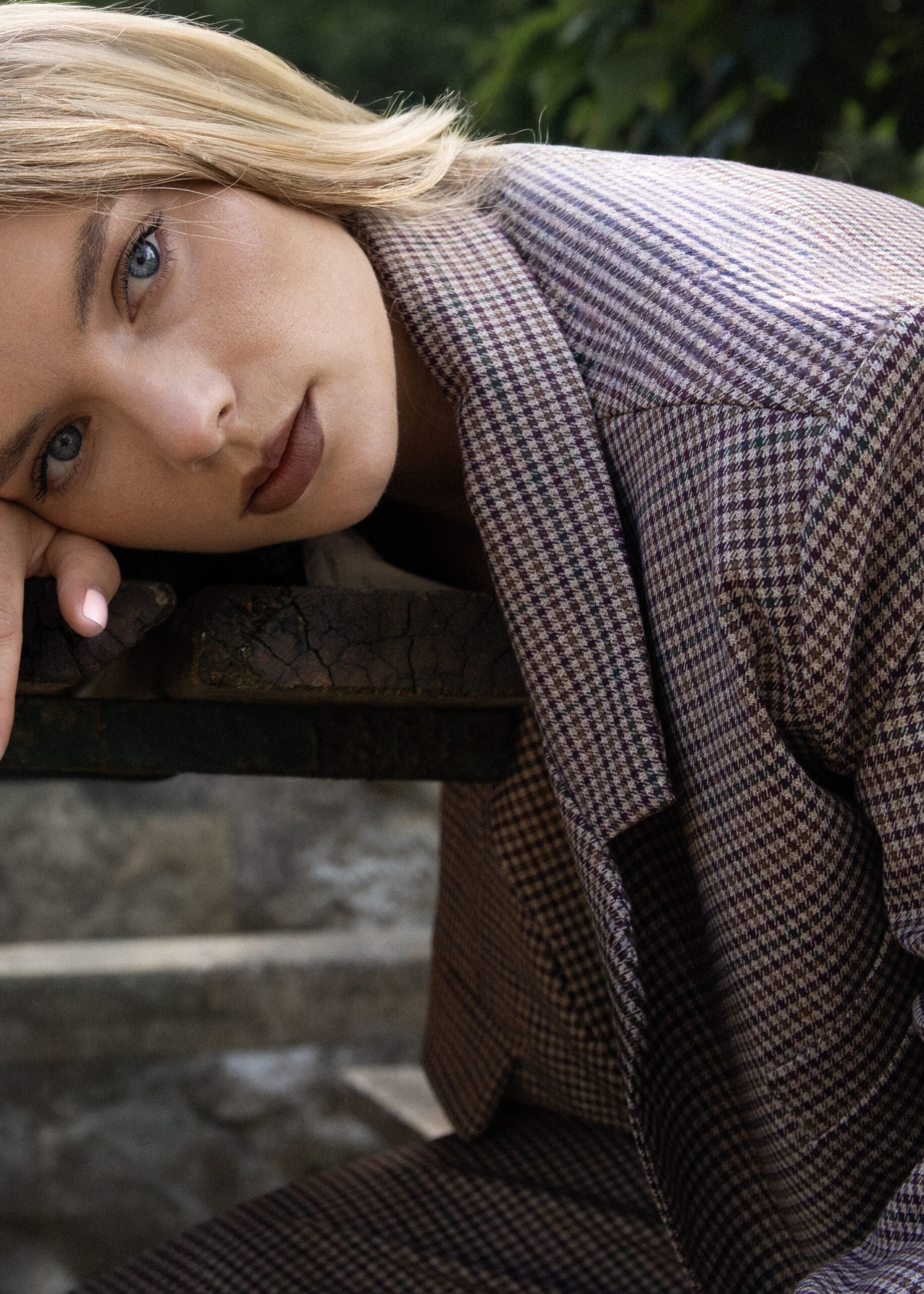 A tailored blazer crafted in a refined pied de poule pattern, blending classic menswear inspiration with a contemporary oversized silhouette. The structured shoulders and notched lapel emphasize its sharp lines, while the single-breasted closure and flap pockets add timeless elegance. Fully lined for comfort, this versatile piece can be styled as part of a coordinated suit or paired with separates to elevate everyday looks. A wardrobe essential that balances modern sophistication with enduring style.