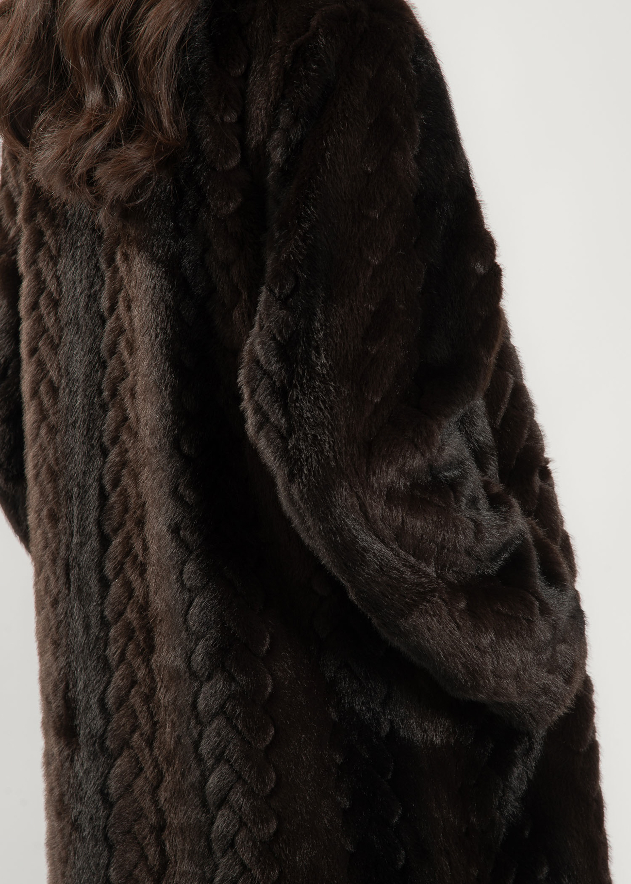Elegant Dark Brown Faux Fur Coat – Long & Braided Texture