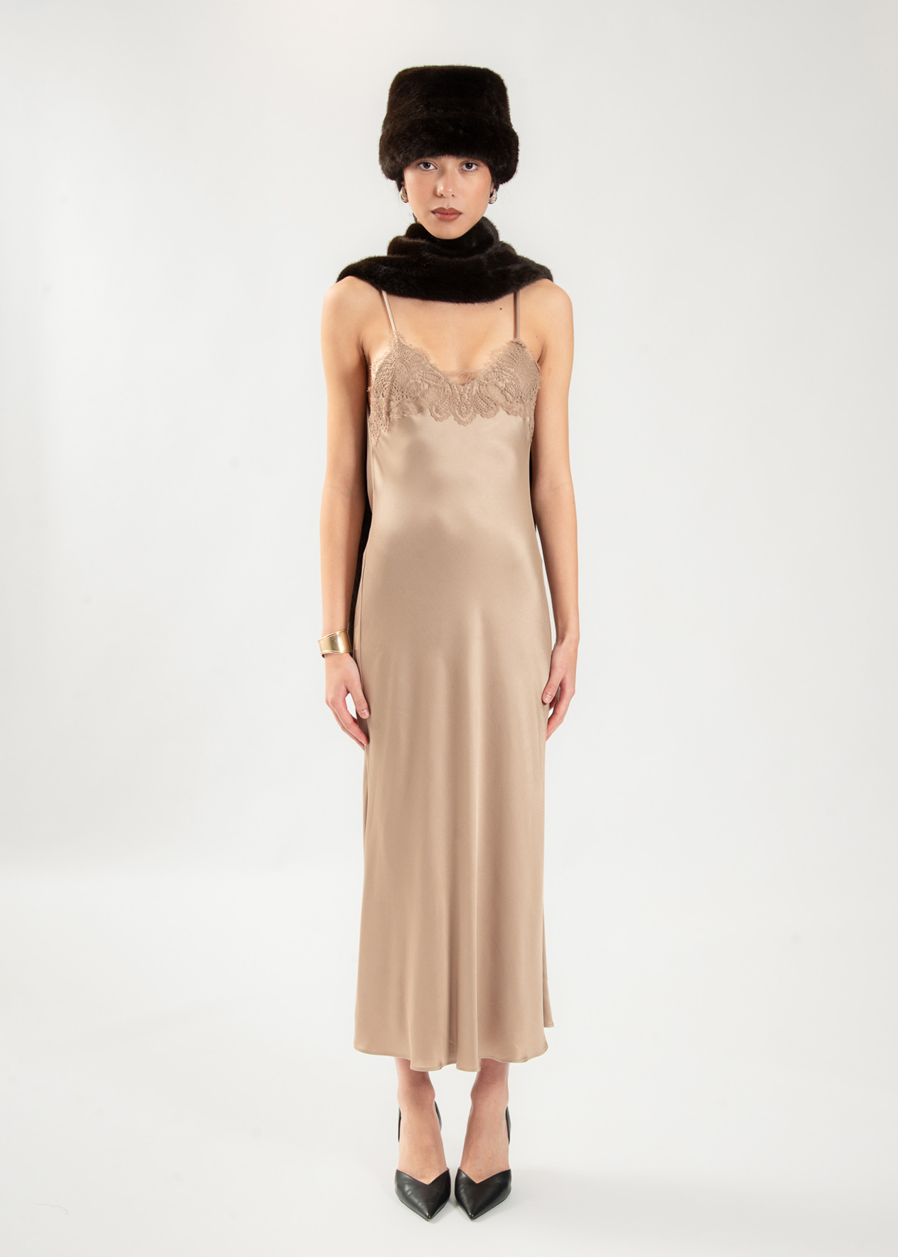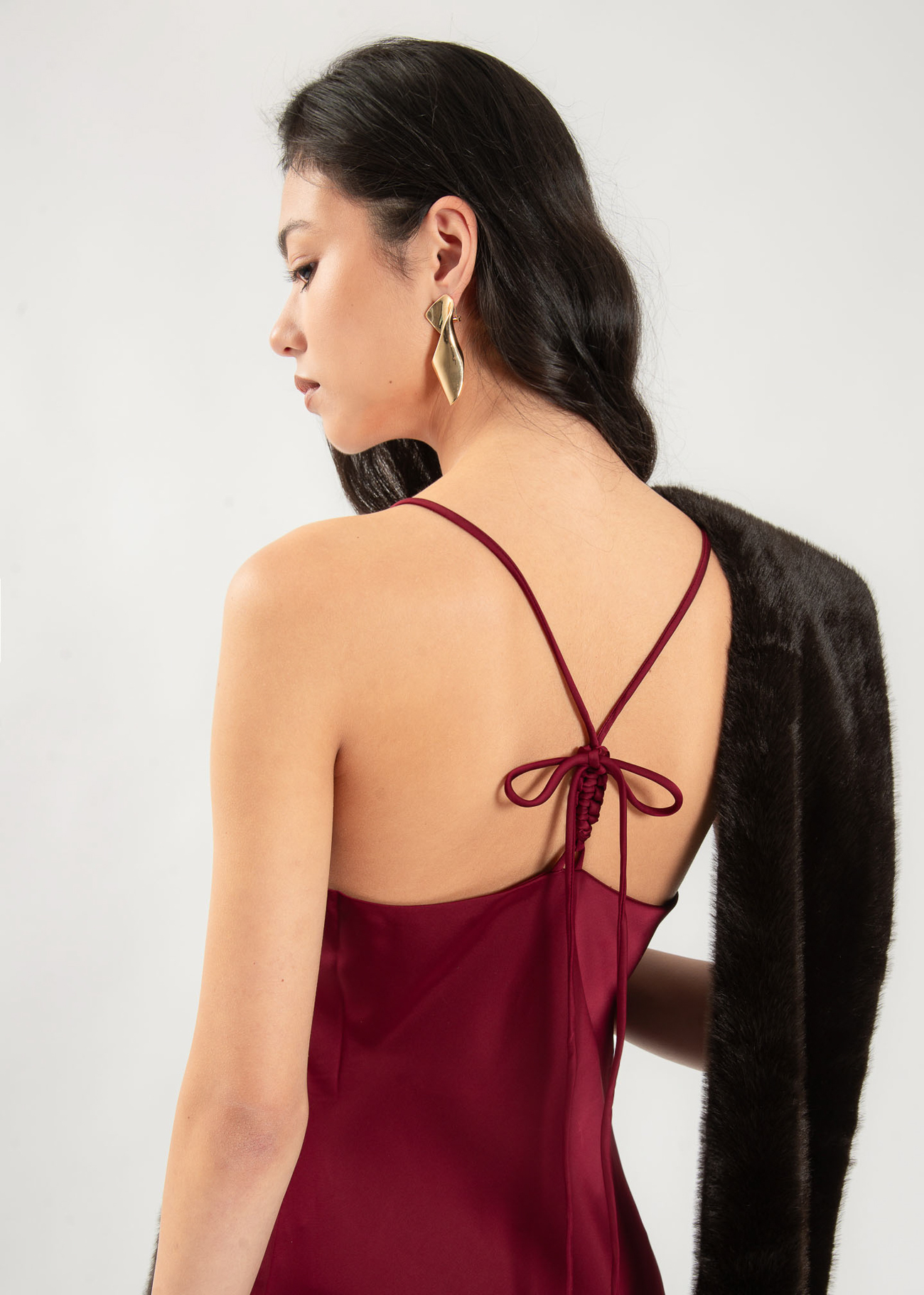Crafted in a sumptuous, rich velvet, the fabric is deliberately chosen for its beautiful depth of color and incredible stretch. The soft blend allows the dress to sculpt and follow your silhouette effortlessly, ensuring both comfort and a perfectly tailored look.