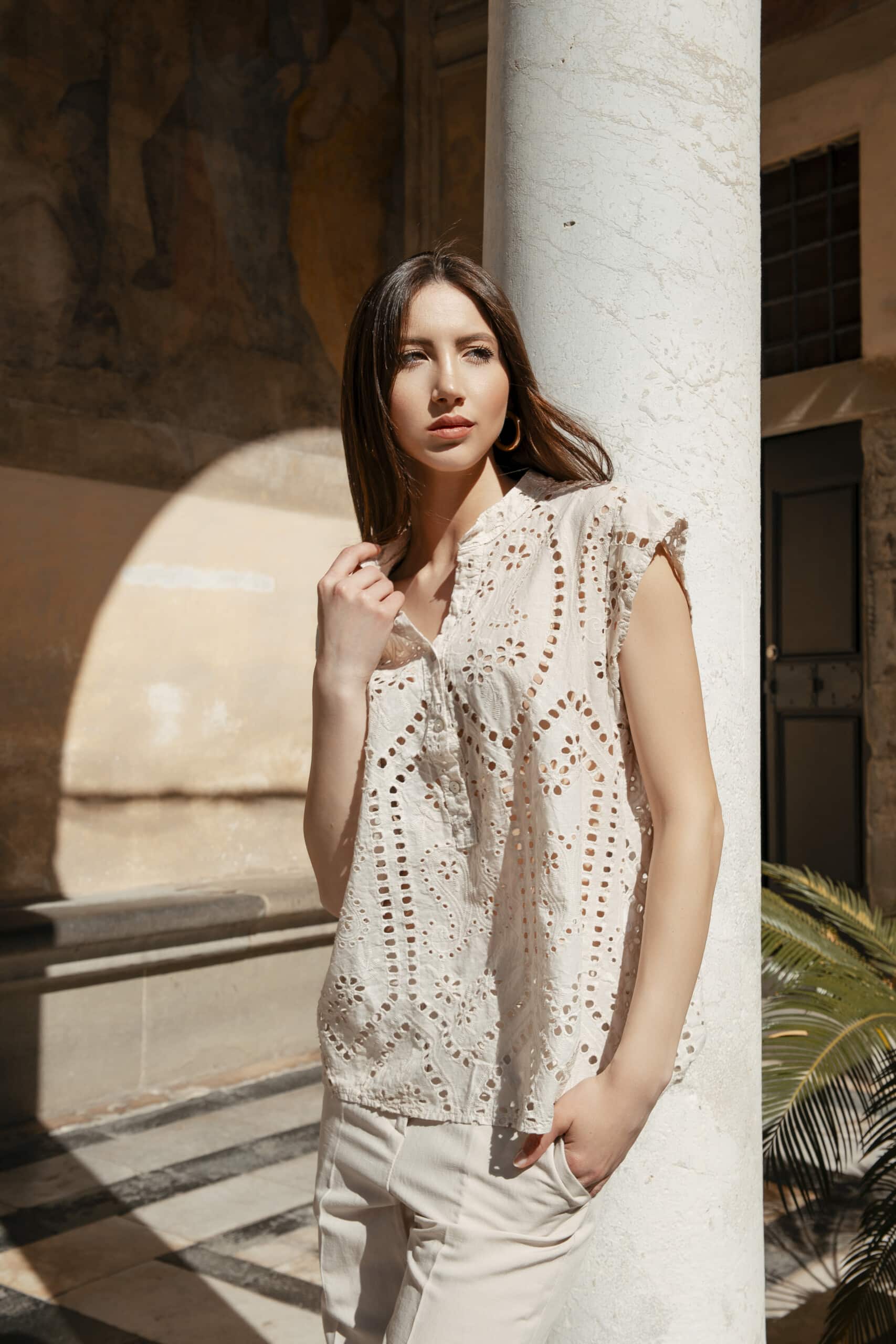 A refined dress designed with a high neckline and softly draped silhouette for a modern yet timeless look. The long sheer sleeves are finished with buttoned cuffs, adding delicate structure and elegance. A button fastening at the back ensures a secure and comfortable fit, while the straight cut makes it versatile for both day and evening wear. Lightweight and effortlessly stylish, this piece is ideal for occasions that call for understated sophistication with a contemporary edge.