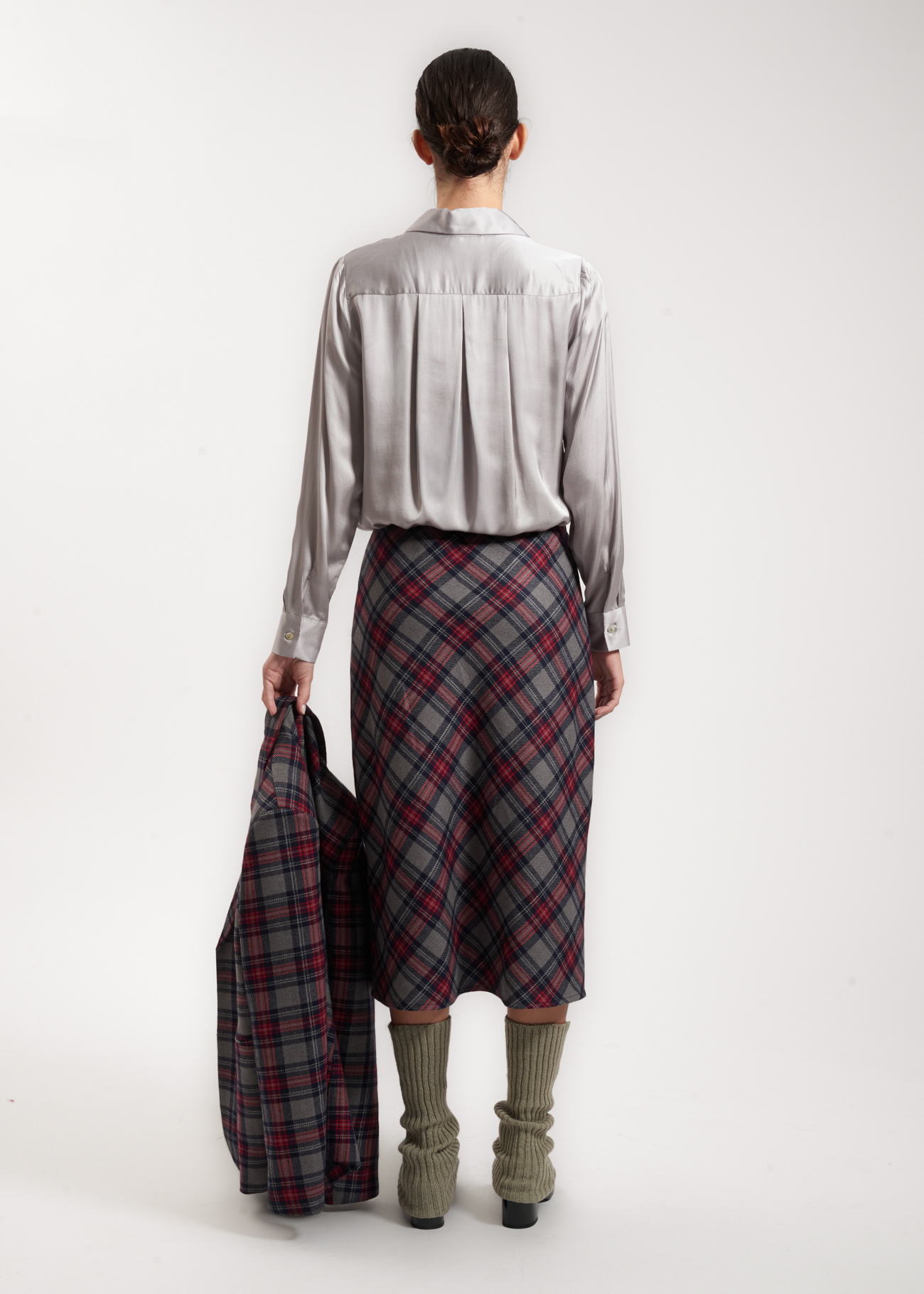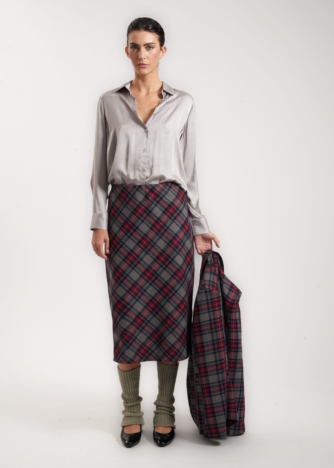 Part of the Christmas Capsule Collection, the Highland Tartan Skirt reinterprets traditional tartan with a modern, feminine twist. Cut from a fine Italian wool blend, it drapes elegantly along the silhouette, offering both structure and movement. Its midi length makes it versatile from day to night, pairing seamlessly with the coordinating Highland Grace Blazer or a silk blouse for an elevated holiday ensemble. A subtle back slit ensures ease of wear while maintaining a graceful line.