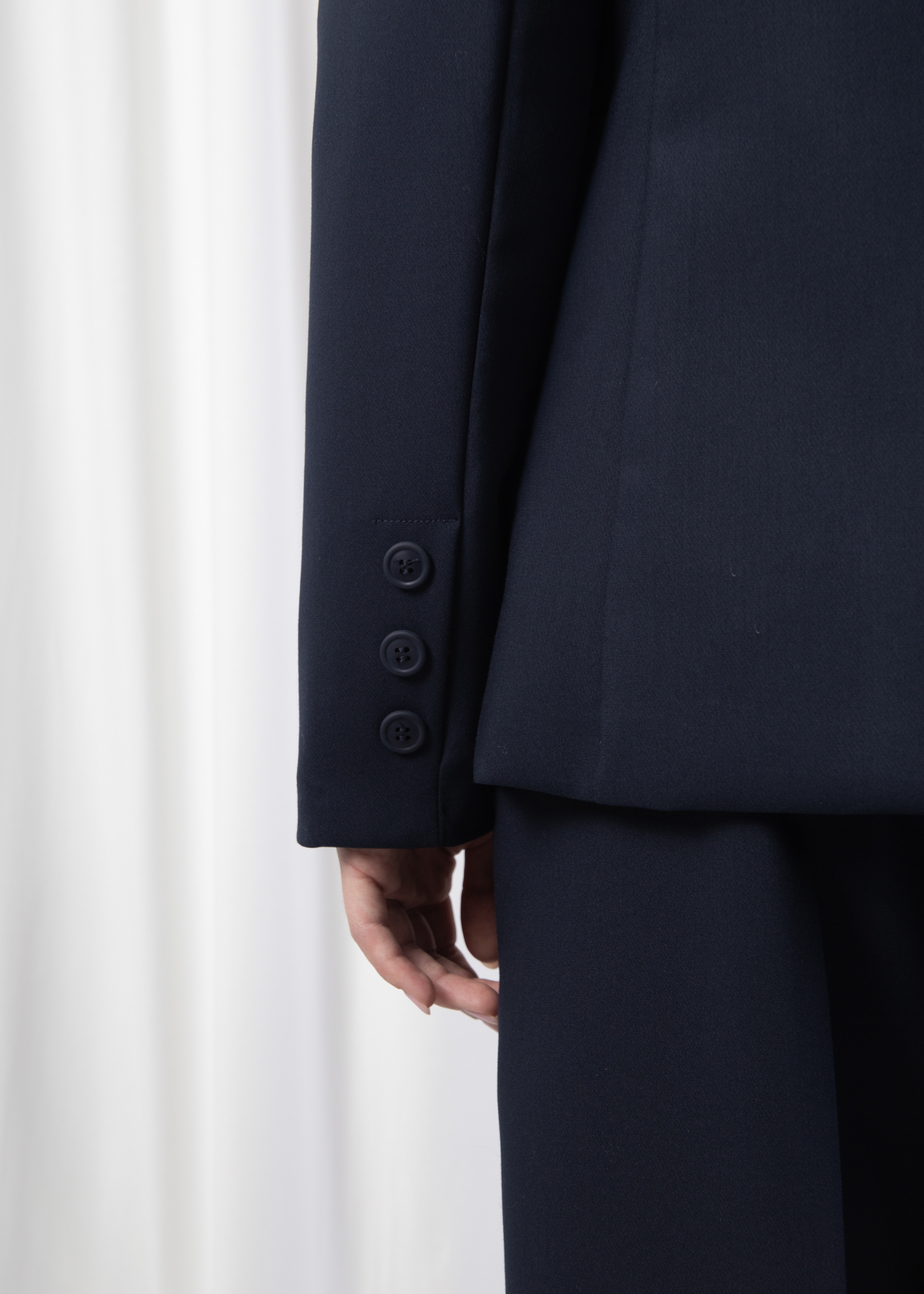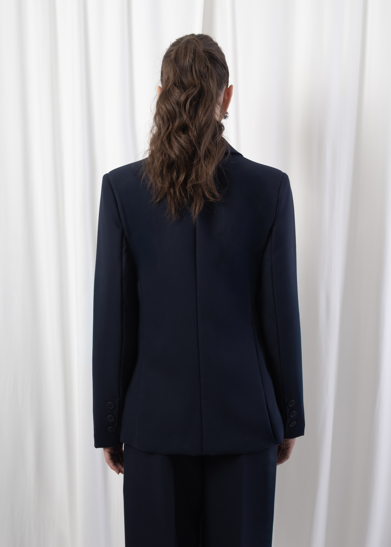 A refined blazer designed with a sharp tailored silhouette and timeless versatility. Featuring a classic notched lapel and a two-button front closure, this piece embodies understated elegance while ensuring a polished finish. Flap welt pockets add a touch of functionality, while the lightly structured shoulders enhance the modern fit. A wardrobe essential that transitions seamlessly from professional settings to evening wear, making it a long-lasting cornerstone of sophisticated style.