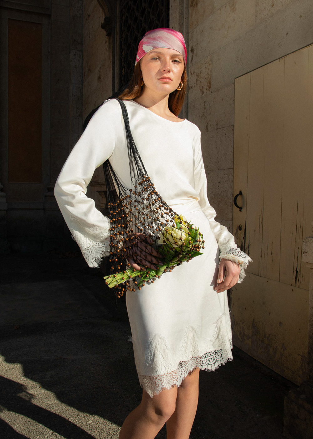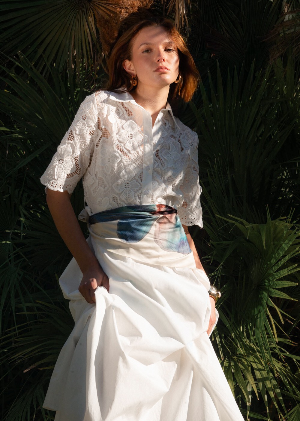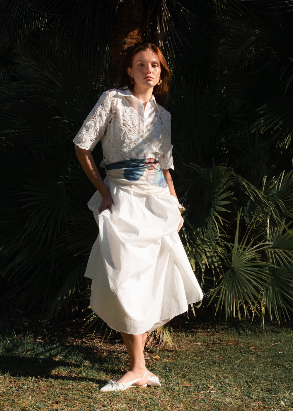 The dress features a beautifully detailed lace top that offers a touch of sophisticated transparency and a feminine silhouette. To ensure a flawless fit and complete coverage, this gown includes a matching white slip dress designed with adjustable straps, allowing you to customize the length and feel to your preference. Whether you are attending a garden wedding, a beach ceremony, or a sophisticated summer evening event, this Italian-made cotton dress provides an effortless glow and understated luxury.